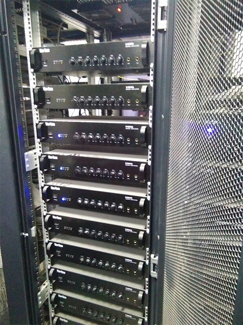 放大設備——指對經過調控設備混音輸出、信號處理后的信號進行后級功率放大設備,這里指專業功率放大器;重放設備——指將經過后級功率放大器放大的音頻信號進行電—聲轉換并釋放表現出來人耳可懂的聲頻信號的設備,這里指揚聲器;