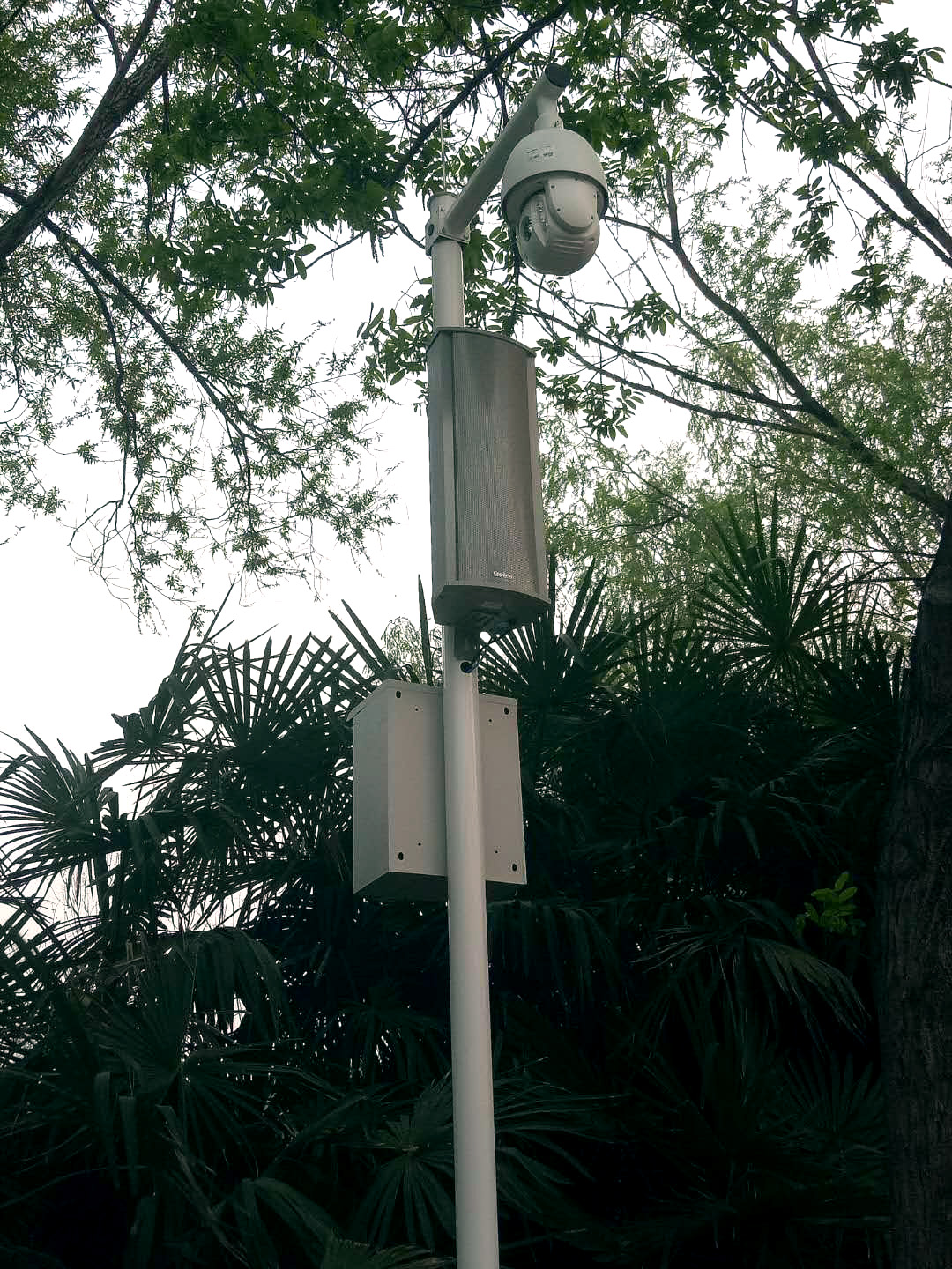 3、系統要求采用定壓傳輸方式。室外區域要求安裝高級室外防雨型音柱。