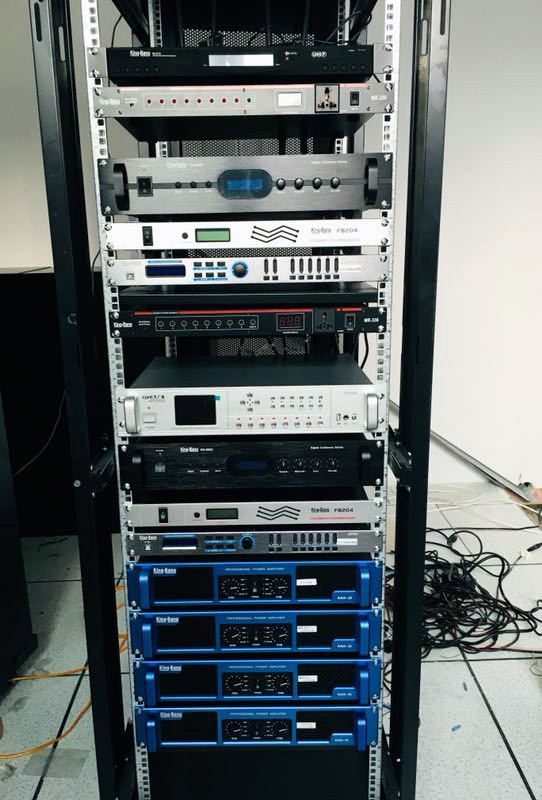會議室擴聲系統參照國家相關設計標準進行設計,保證會議室在哪個角落都能夠聽得清楚,保證了會議室能夠滿足客戶的需求:功放功率嚴格按照音箱功率的1.5倍進行設置;設置有12路調音臺、均衡器和反饋抑制器等一系列專業設備,保證有優秀的音色效果。