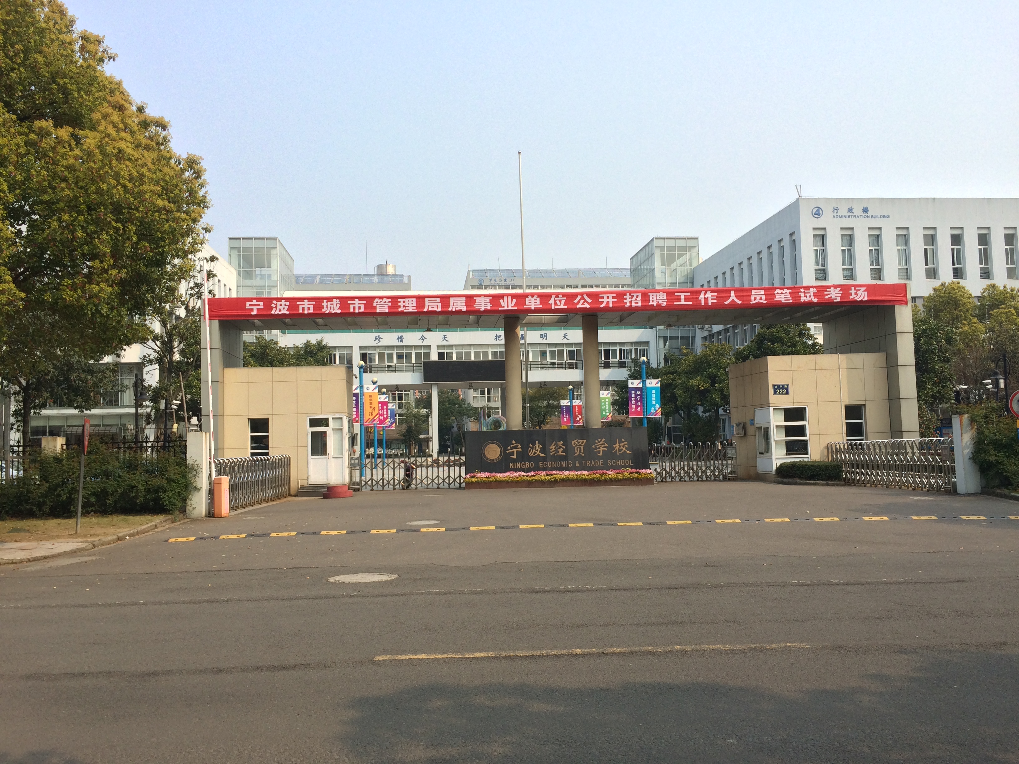 寧波經(jīng)貿(mào)學(xué)校(寧波市第九中學(xué))創(chuàng)辦于1956年,職業(yè)教育始辦于1984年,2006年被評(píng)為浙江省一級(jí)重點(diǎn)職高,2008年2月成為國(guó)家級(jí)重點(diǎn)職業(yè)學(xué)校。2006年9月,學(xué)校完成整體搬遷,全新校舍位于高教園區(qū)南區(qū),按國(guó)家級(jí)全寄宿制重點(diǎn)職業(yè)學(xué)校標(biāo)準(zhǔn)建設(shè),占地121畝,建筑面積5萬(wàn)5千余平方米,其中實(shí)訓(xùn)大樓建筑面積15000余平方米,建成學(xué)校所設(shè)專(zhuān)業(yè)配套實(shí)驗(yàn)實(shí)訓(xùn)室50余個(gè),實(shí)現(xiàn)了教學(xué)硬件配置現(xiàn)代化、規(guī)格化,盡享高教園區(qū)的文化資源和育人氛圍。學(xué)校著力打造本市首家開(kāi)放式現(xiàn)代服務(wù)業(yè)實(shí)訓(xùn)基地,充分發(fā)揮基地的教育實(shí)訓(xùn)功能、培訓(xùn)功能和職業(yè)資格鑒定功能。
