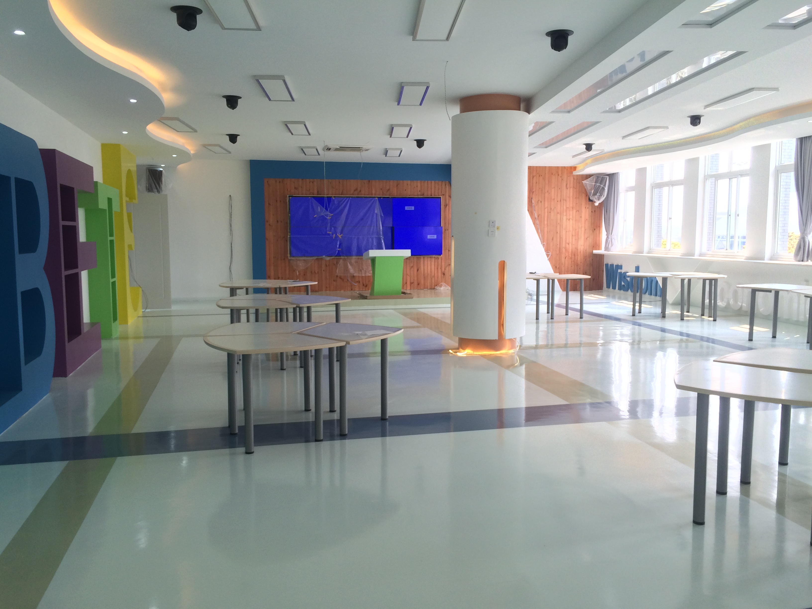 寧波經(jīng)貿(mào)學(xué)校會(huì)議室中安裝了京邦電子(KING-BANG)可編程中央控制主機(jī)。該系統(tǒng)以中央控制主機(jī)K-4960為核心,功能強(qiáng)大。通過(guò)無(wú)線(xiàn)真彩觸摸屏等設(shè)備作為人機(jī)交互式平臺(tái),一鍵隨心控制各種顯示終端、投影機(jī)、展示臺(tái)、DVD、功放、會(huì)議系統(tǒng)、電動(dòng)屏幕、電動(dòng)窗簾、燈光等設(shè)備。