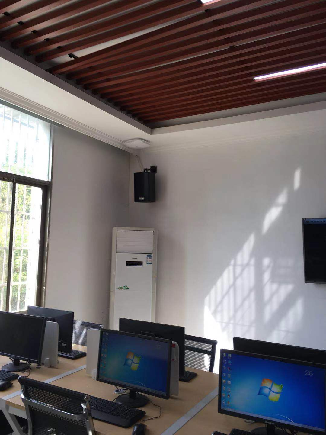 音箱選用F系列專業音箱一對,該款專業音箱低音彈性好,力度足,人聲頻帶寬、中高音清晰亮度好,適合多媒體教室內黑板兩側壁掛式安裝,造型典雅別致,與教室環境完美融合。