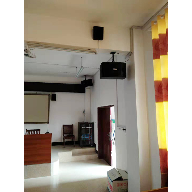 專業擴聲系統簡單來說就是把聲音信號放大,主要由聲源、音頻處理設備、功放及揚聲器系統組成。通過計算會議室的音響場地系數進行設計,保證會議室每個角落的聲場聽覺均勻,音響效果達到語言清晰、無失真、聲場分布均勻。