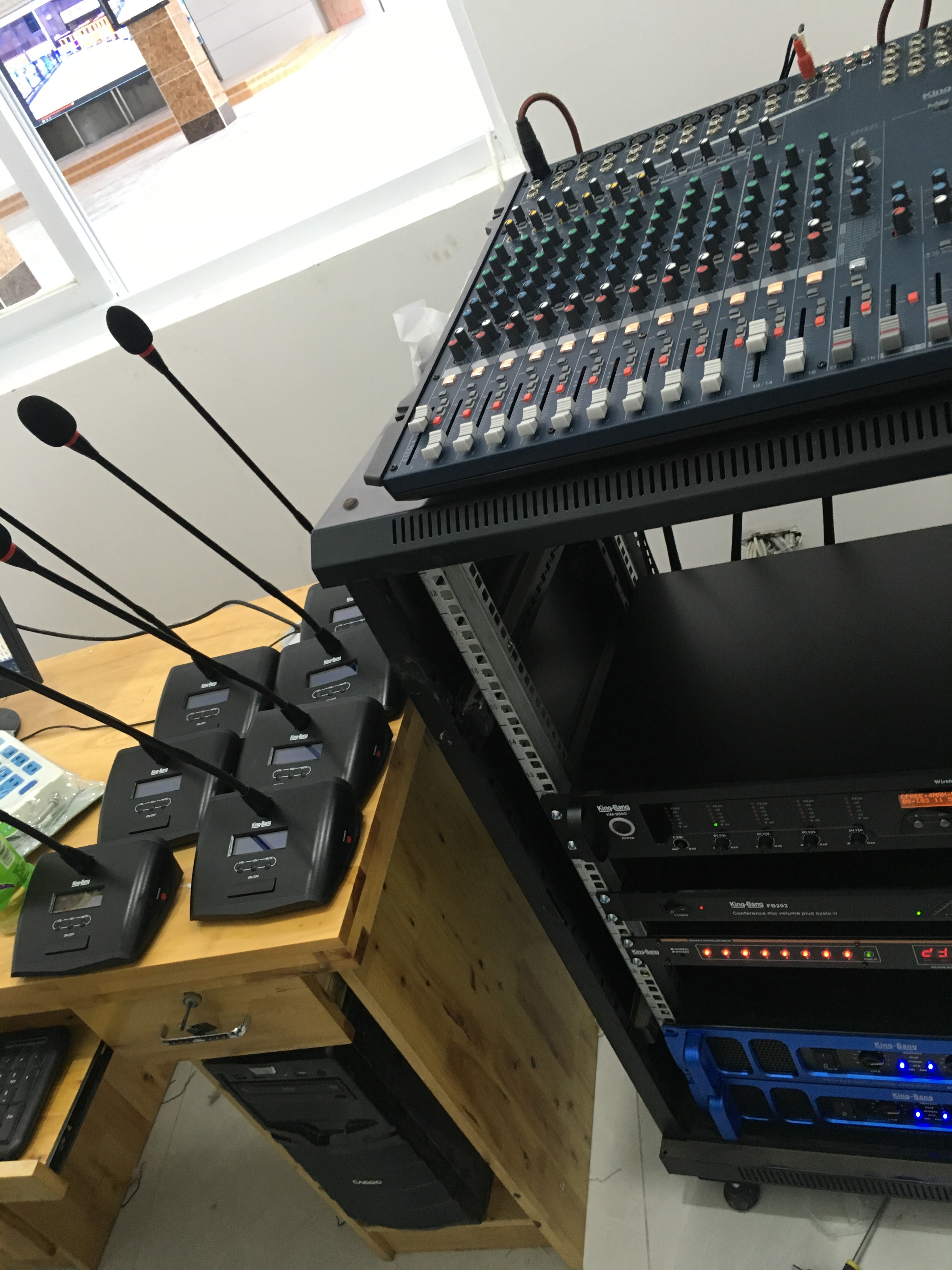 經(jīng)過分析對比,再結(jié)合現(xiàn)場情況及客戶的使用需求,京邦電子(KING-BANG)為項目設(shè)計了一套靈活方便的會議系統(tǒng)方案。以KM-9600系列為主導,搭配高保真的超心型指向電容會議話筒。主機可以設(shè)置“有聲控模式”、“先進先出模式”、“后進先出模式”、“主席模式”、“全開模式”和“搶答模式”等發(fā)言模式,系統(tǒng)也可自動發(fā)言時間與定時發(fā)言時間,讓負責會議的人員更加方便地管理與會人員的參與發(fā)言,會場發(fā)言更加穩(wěn)而有序