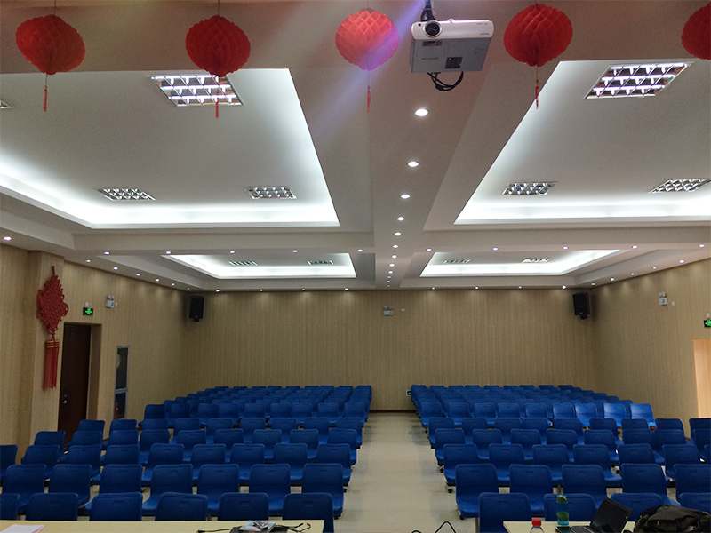 專業擴聲系統簡單來說就是把聲音信號放大,主要由聲源、音頻處理設備、功放及揚聲器系統組成。通過計算會議室的音響場地系數進行設計,保證會議室每個角落的聲場聽覺均勻,音響效果達到語言清晰、無失真、聲場分布均勻。
