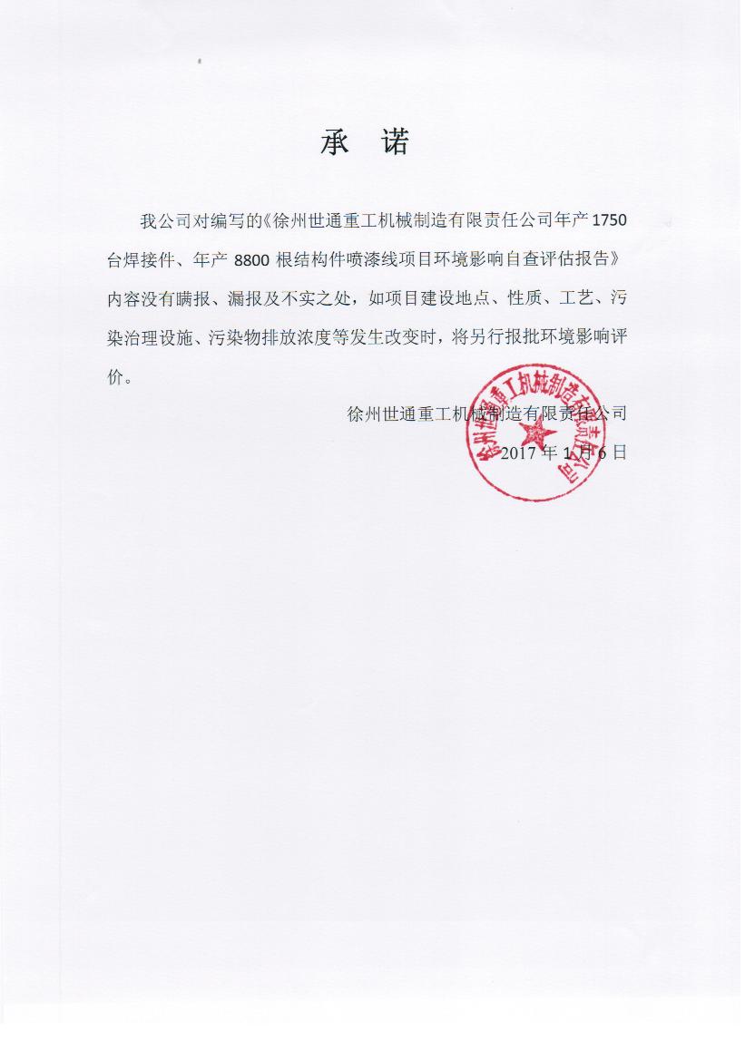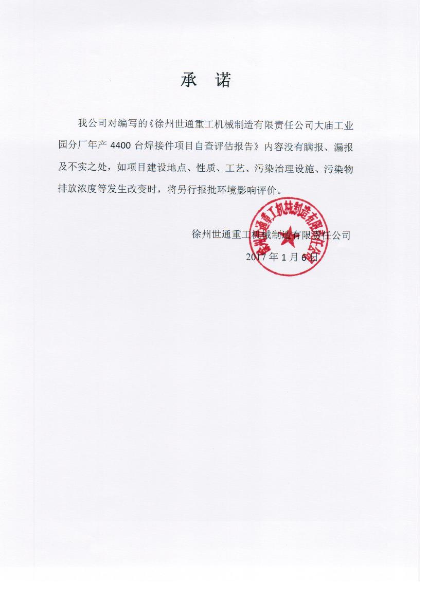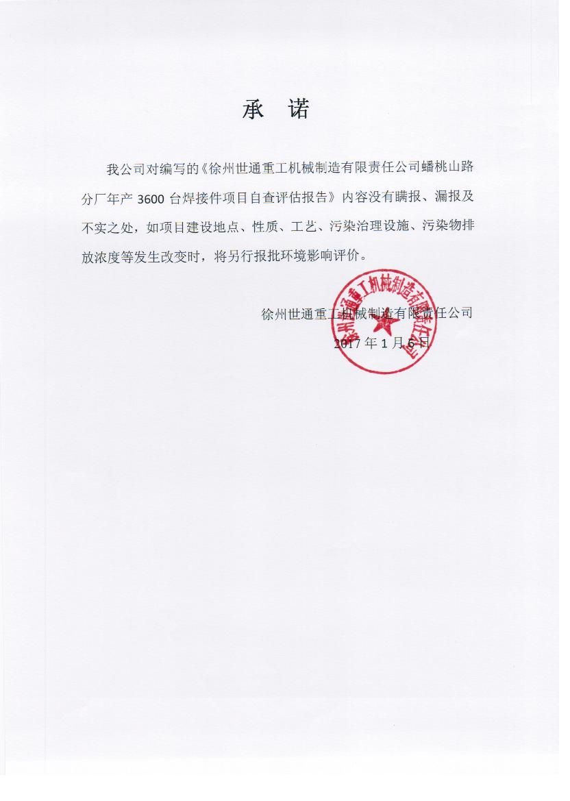關(guān)于徐州世通重工機(jī)械制造有限責(zé)任公司自查評(píng)估報(bào)告及承諾書的公示
