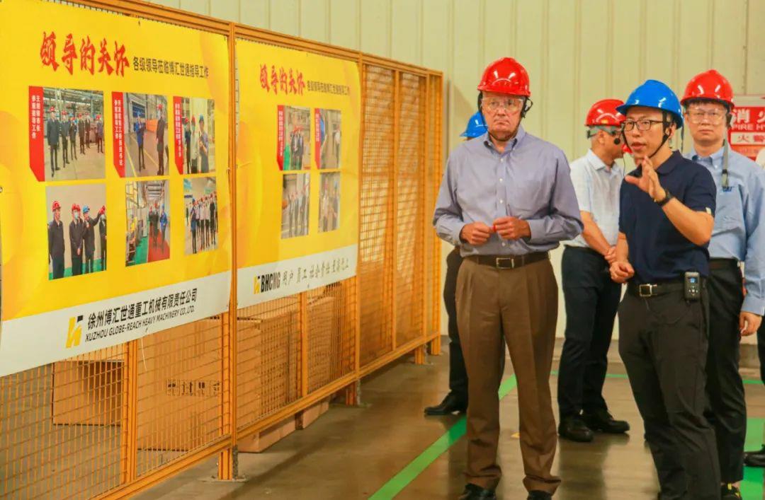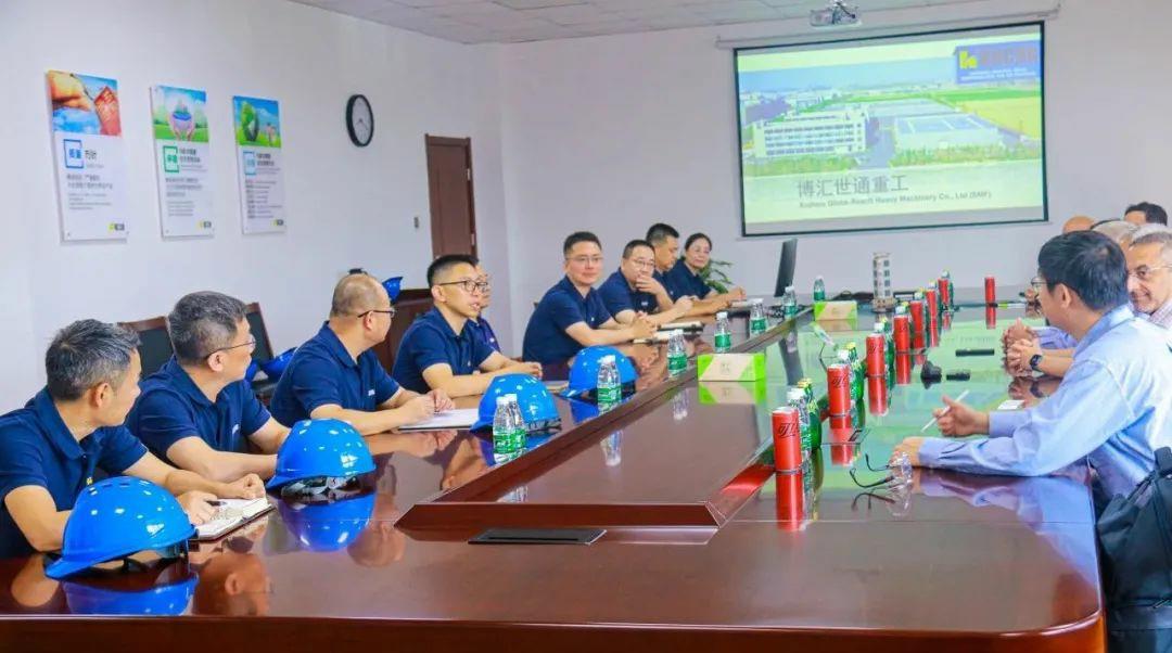 8月1日,卡特彼勒液壓挖掘機(jī)全球高級(jí)副總裁Tom Frake、卡特彼勒全球高級(jí)副總裁楊程建、卡特彼勒液壓挖掘機(jī)首席財(cái)務(wù)官Sandeep Virmani、卡特彼勒挖掘機(jī)全球采購經(jīng)理Frank Li等一行7人到博匯世通東環(huán)廠區(qū)參觀訪問。博匯集團(tuán)董事長付健、公司董事長兼總經(jīng)理付子一等領(lǐng)導(dǎo)陪同。