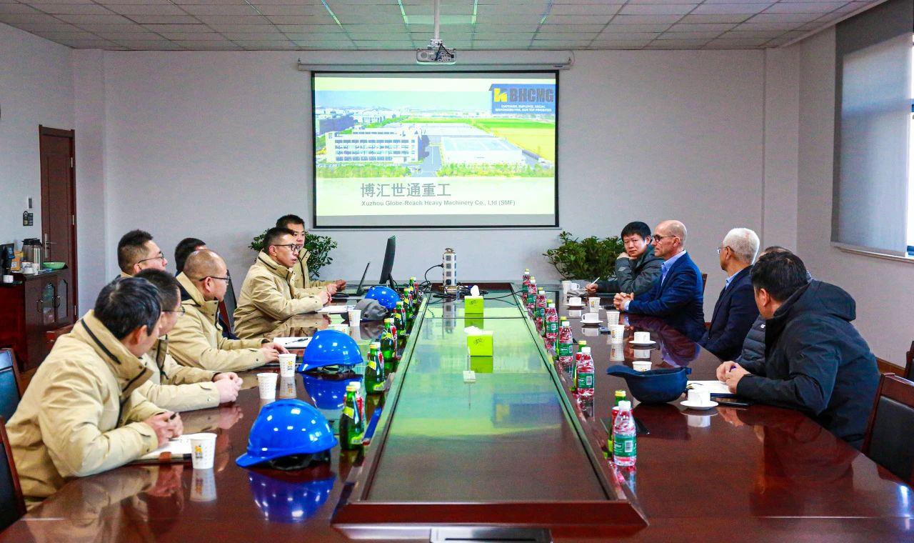 1月23日,卡特彼勒集團總裁Tony Fassino、卡特彼勒高級副總裁楊程建、卡特彼勒中國運營部副總裁馬建平、卡特彼勒挖掘事業(yè)部采購經(jīng)理汪銳、李宗玉等一行5人蒞臨博匯世通東環(huán)廠區(qū)考察訪問。博匯集團董事長付健,博匯世通總經(jīng)理付子一等領(lǐng)導全程陪同。