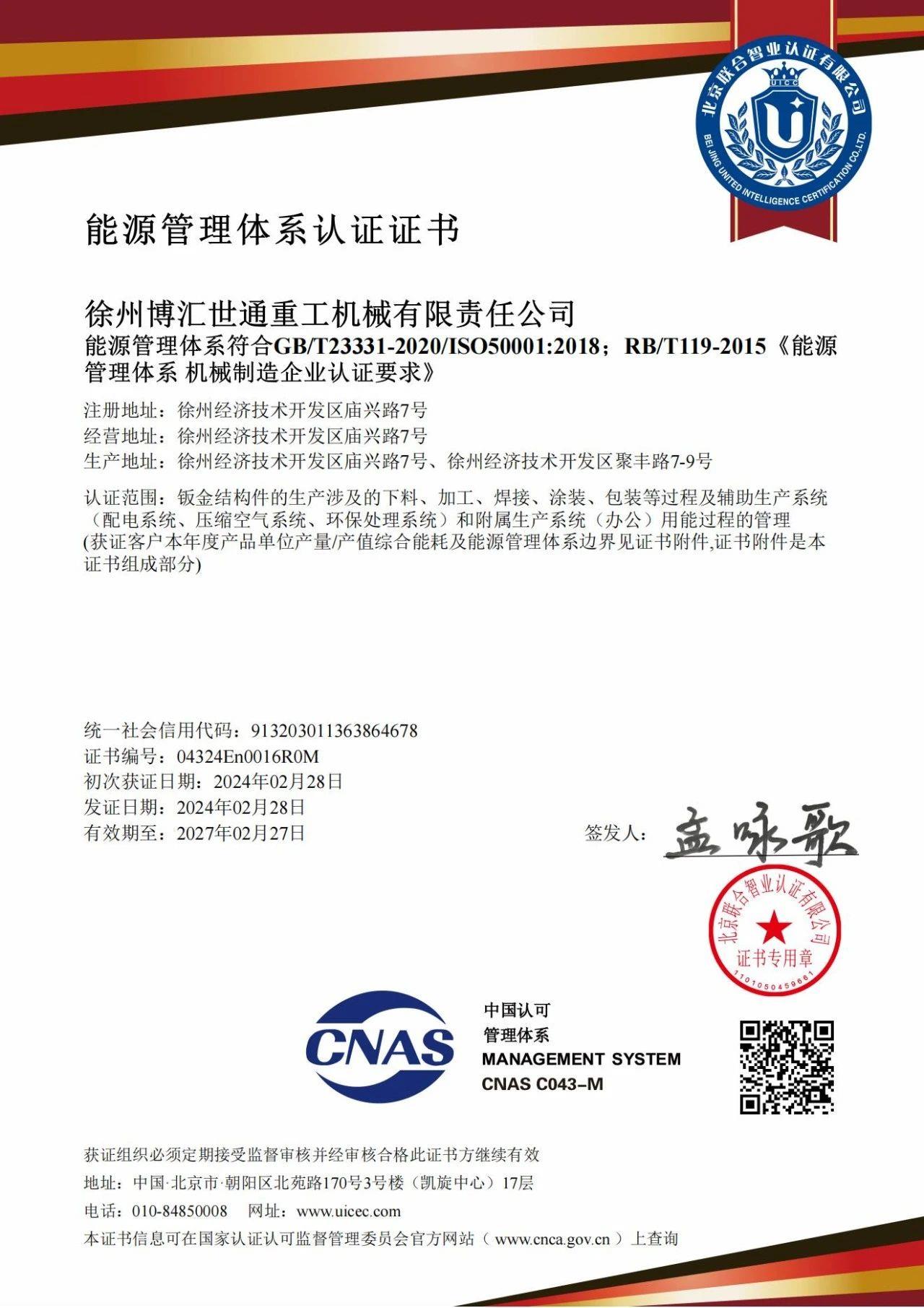 1月31日至2月5日,博匯世通順利完成了北京聯(lián)合智業(yè)認(rèn)證有限公司的能源管理體系初次認(rèn)證,并于2月28日獲得能源管理體系認(rèn)證證書。